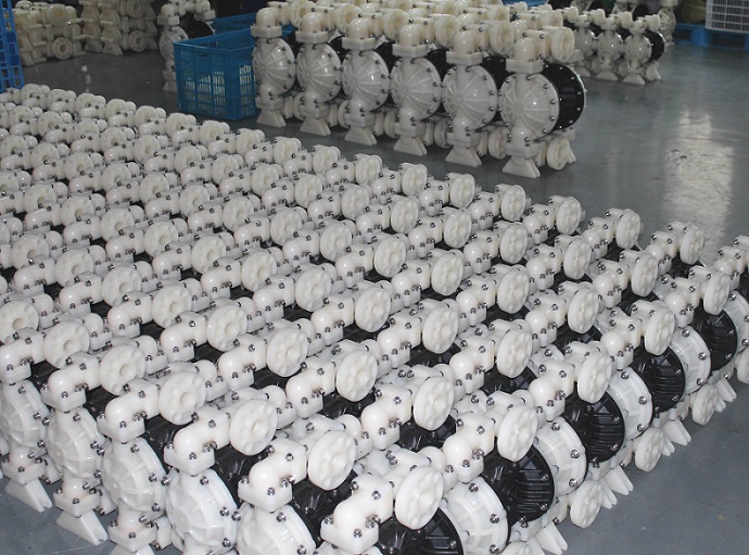 在隔膜泵的兩個對稱工作腔中,各裝有一塊有彈性的隔膜6,聯桿將兩塊隔膜結成一體,壓縮空氣從泵的進氣接頭1進入配氣閥3后,推動兩個工作腔內的隔膜,驅使聯桿聯接的兩塊隔膜同步運動。與此同時,另一工作腔中的氣體則從隔膜的背后排出泵外。一旦到達行程終點。配氣機構則自動地將壓縮空氣引入另一個工作腔,推動隔膜朝相反方向運動,這樣就形成了兩個隔膜的同步往復運動。每個工作腔中設置有兩個單向球閥4,隔膜的往復運動,造成工作腔內容積的改變,迫使兩個單向球閥交替地開啟和關閉,從而將液體連續地吸入和排出。